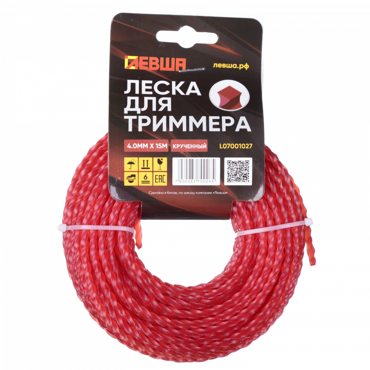 Леска для триммера 4.0мм*15м, крученная ЛЕВША