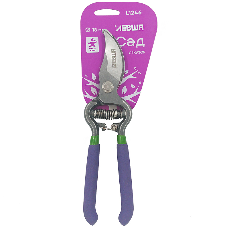 Секатор плоскостной Левша L1246, с коваными изогнутыми лезвиями, диам.реза 18мм