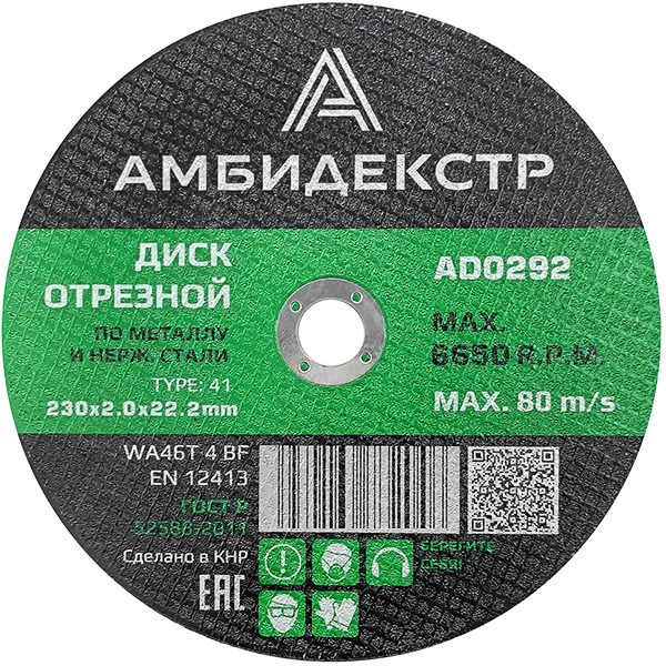 Диск отрезной по металлу 230*2*22 Амбидекстр
