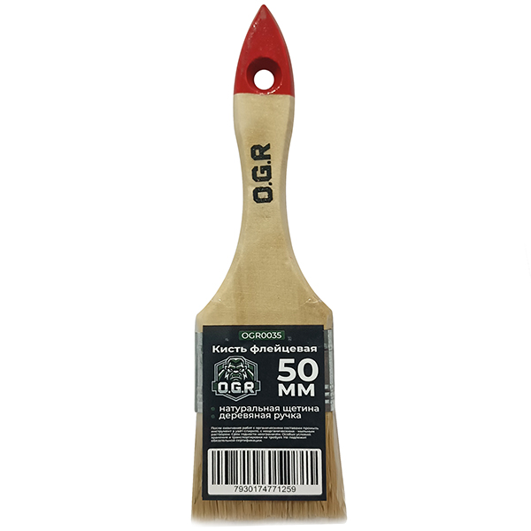 Кисть плоская 50мм OGR, деревянная ручка, натур. щетина