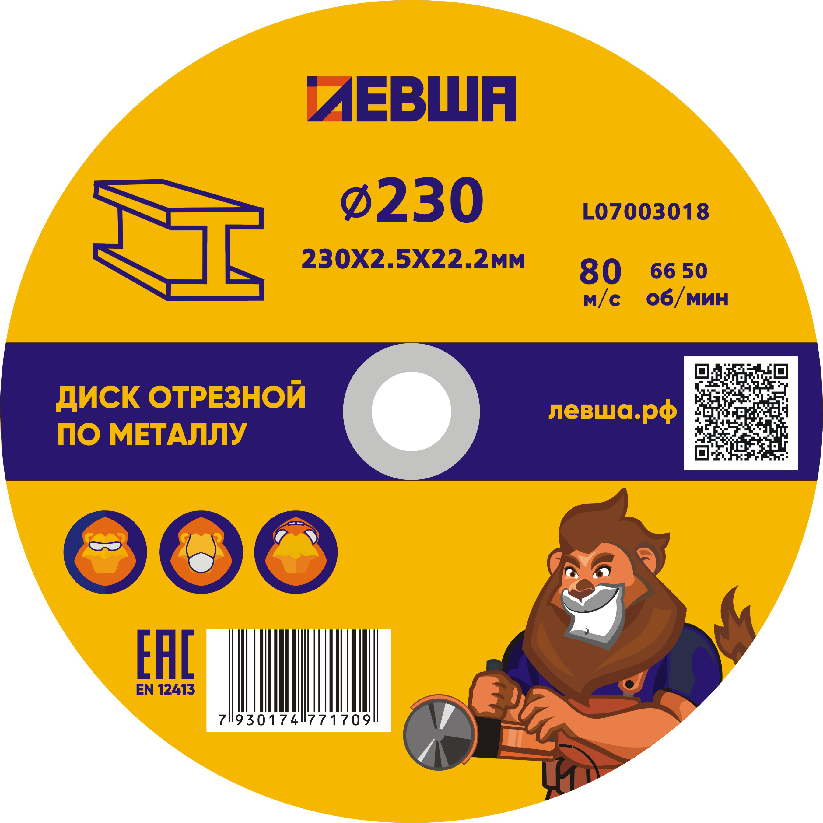 Диск отрезной по металлу 230*2,5*22 Левша