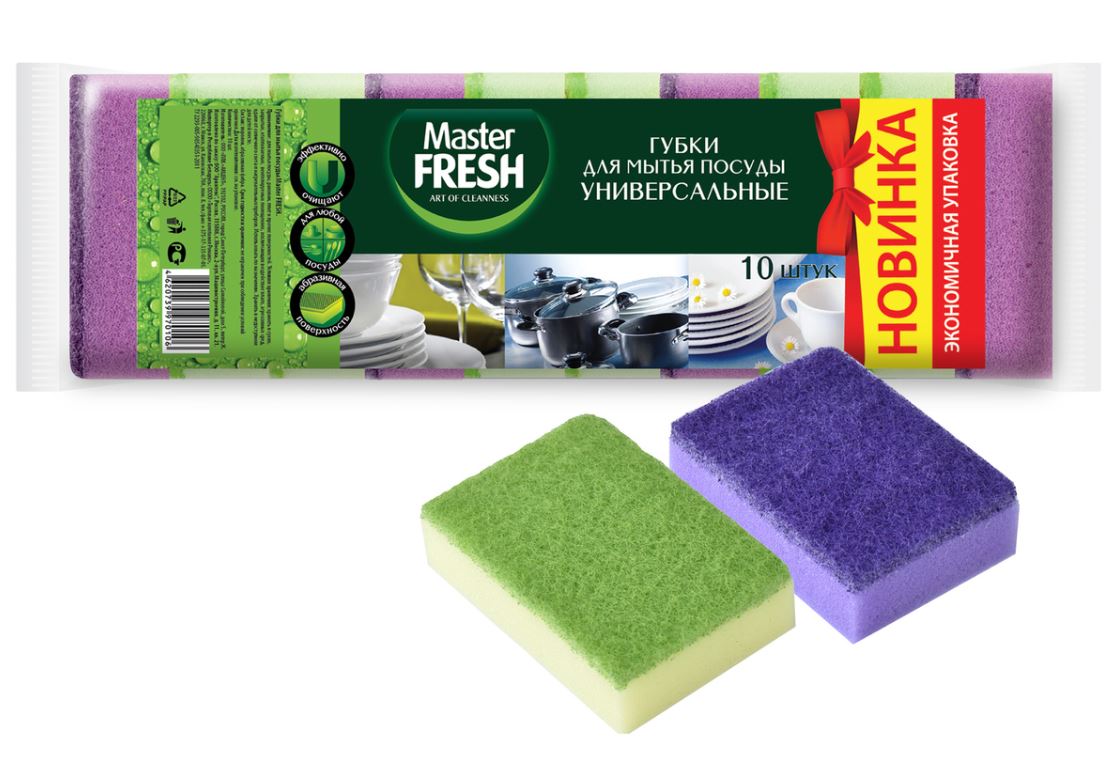 Губки для мытья посуды Master FRESH,цветные 10 шт