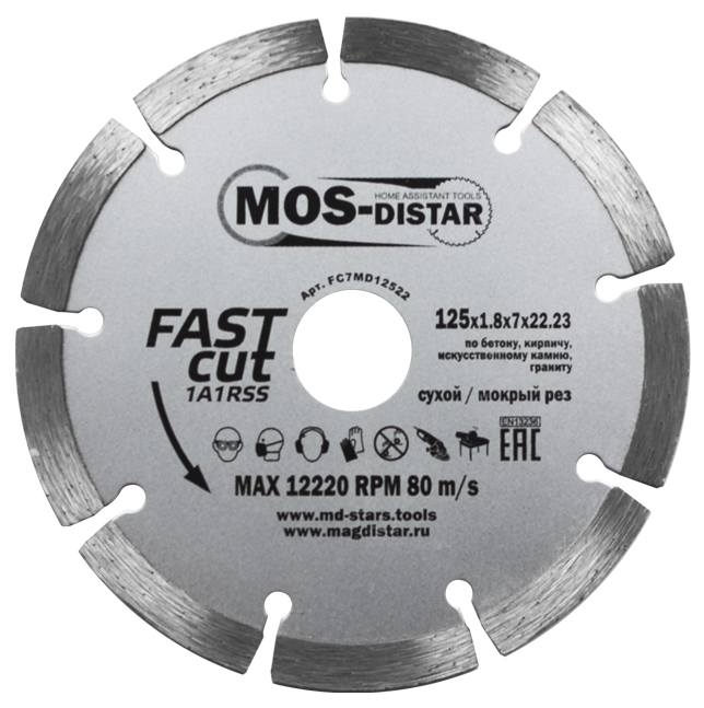 Диск алмазный сегмент 125*1,8*7*9T*22 MOS-Distar 1A1RSS FAST CUT (Быстрый рез)