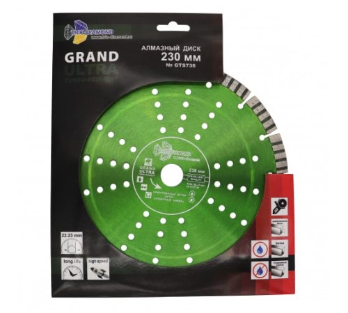 Диск алмазный сегмент - турбо 230*22 TRIO-DIAMOND Grand Ultra (hot press) GTS736