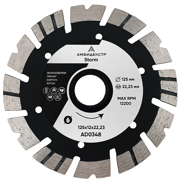 Диск алмазный сегмент - турбо 125*12*22 Амбидекстр Storm
