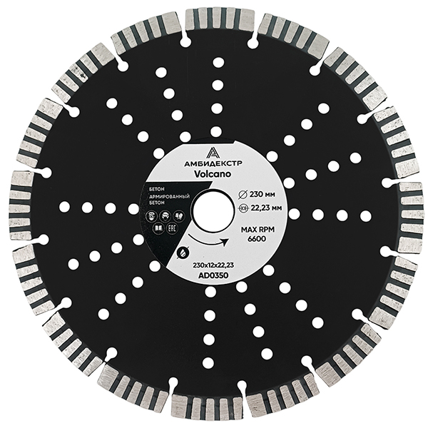 Диск алмазный сегмент - турбо 230*12*22 Амбидекстр Volcano