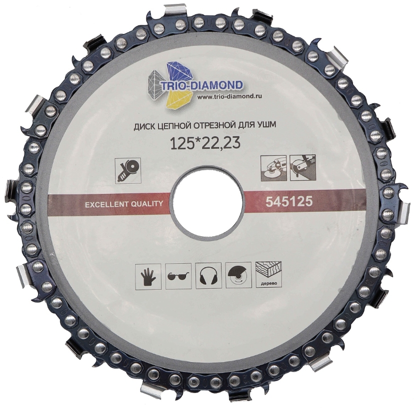 Диск пильный цепной по дереву для УШМ, отрезной 125*22,23 Trio-Diamond