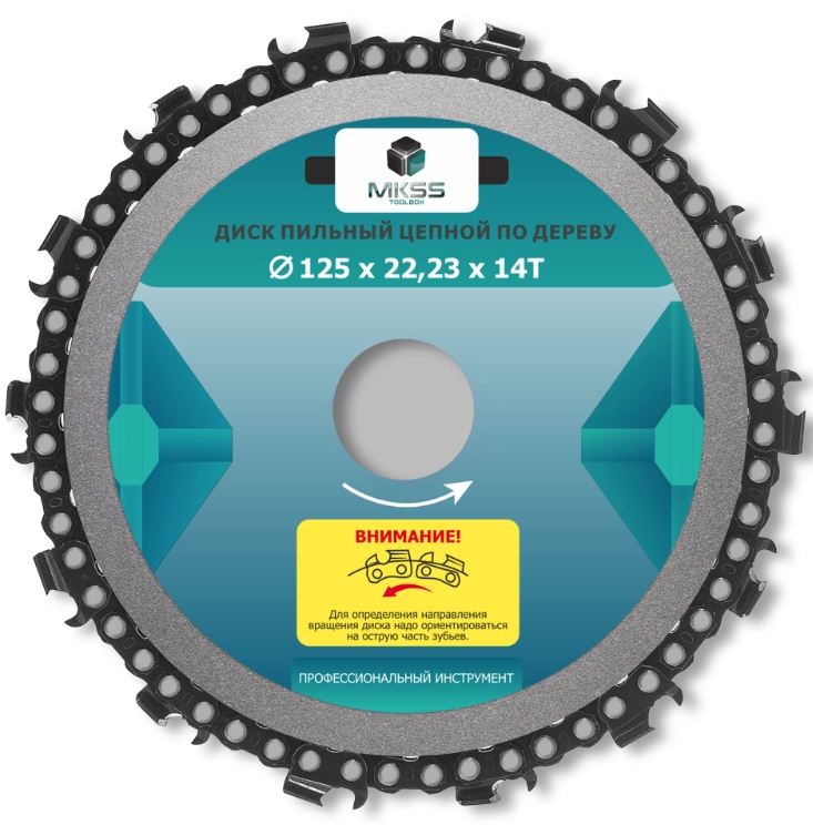 Диск пильный цепной по дереву для УШМ, отрезной 125*14*22,23 MKSS MK2200