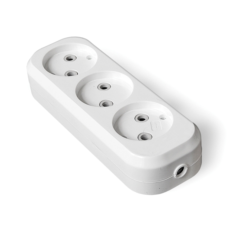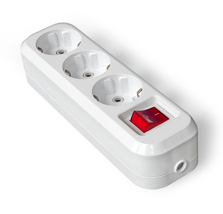 Колодка 3 гнезда, с заземлением, с выключателем, IONICH