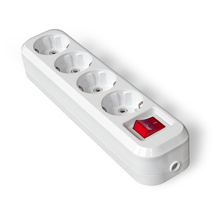 Колодка 4 гнезда, с заземлением, с выключателем, IONICH