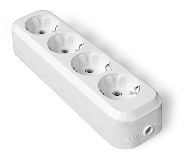 Колодка 4 гнезда, с заземлением, с заглушками (каучук) 16А, Амбидекстр