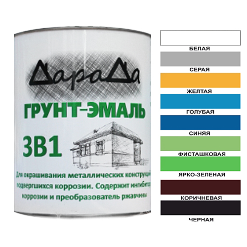 Грунт-эмаль быстросохнущий (Дарада) "3 в 1" ГОСТ белый, 0,8 кг
