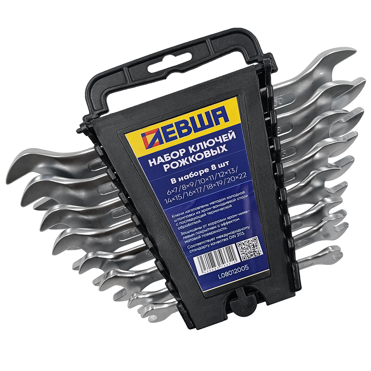 Набор ключей рожковых 6-22мм (8пр.) Левша, пластиковый бокс (вертикал.)