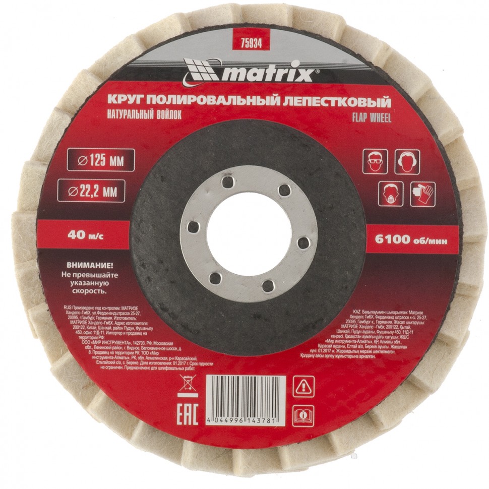 Круг полировальный лепестковый из натурального войлока 125*22,2 Matrix