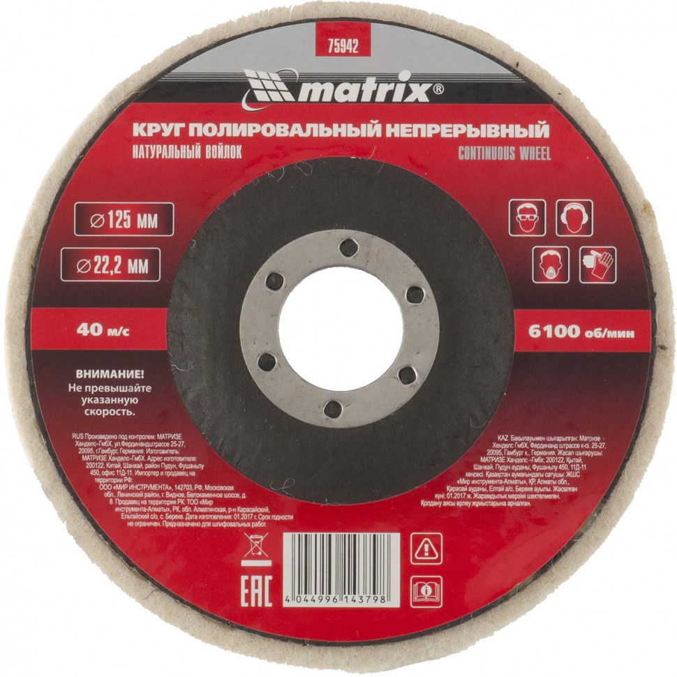 Круг полировальный непрерывный из натурального войлока 125*22,2 Matrix
