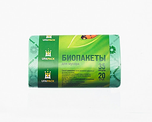 Пакеты для мусора БИО (биоразлагаемые) ПНД "Уфа ПАК" 35 л. 20 шт. зеленые, р. 50x60см, 15мкм (18)