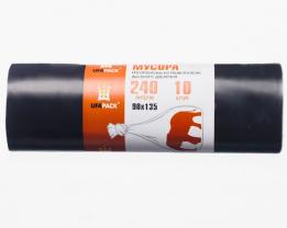 Пакеты для мусора ПВД "Уфа ПАК" 240 л. 10 шт. черные, р. 90x135см, 20мкм (8)