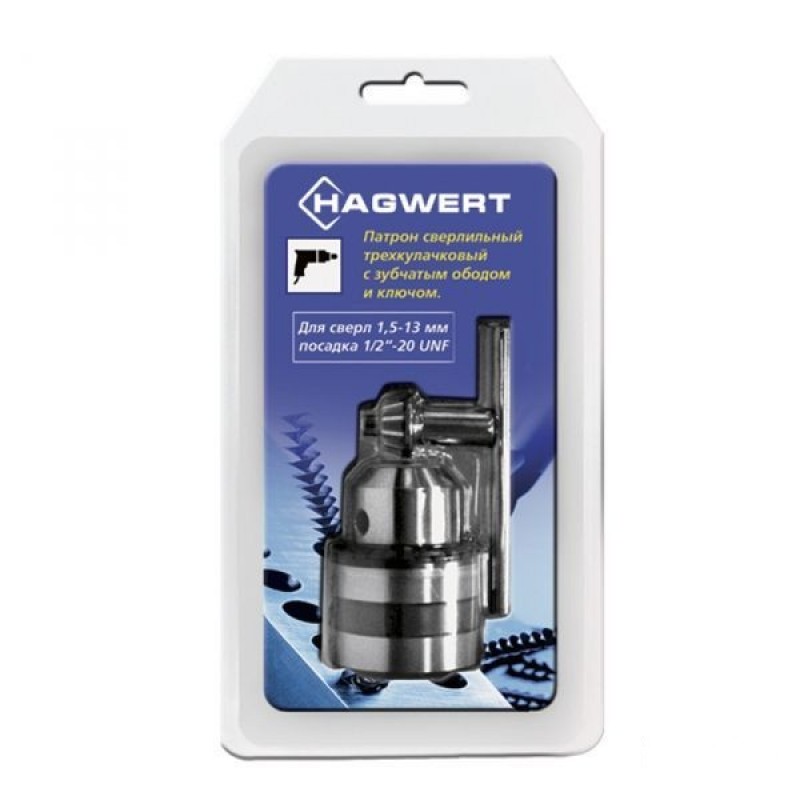 Патрон для дрели с ключом, 1.5-13.0мм, 1/2"-20UNF, в блистере, Hagwert "Key Job"