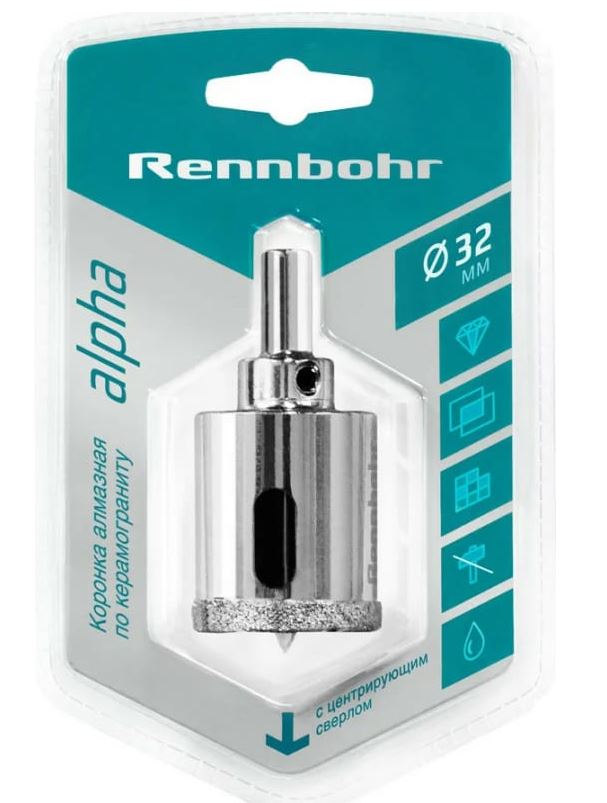 Коронка по керамике, керамограниту с центр.сверлом 32мм Rennbohr