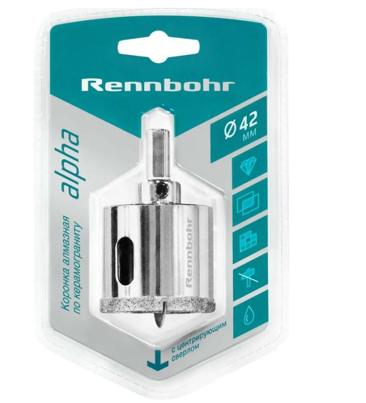 Коронка по керамике, керамограниту с центр.сверлом 42мм Rennbohr