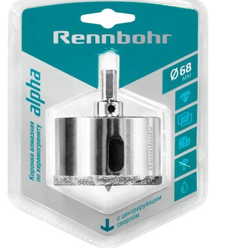 Коронка по керамике, керамограниту с центр.сверлом 68мм Rennbohr