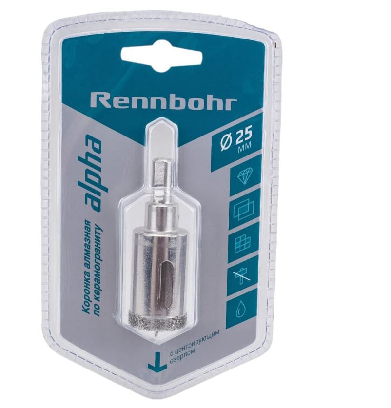 Коронка по керамике, керамограниту с центр.сверлом 25мм Rennbohr
