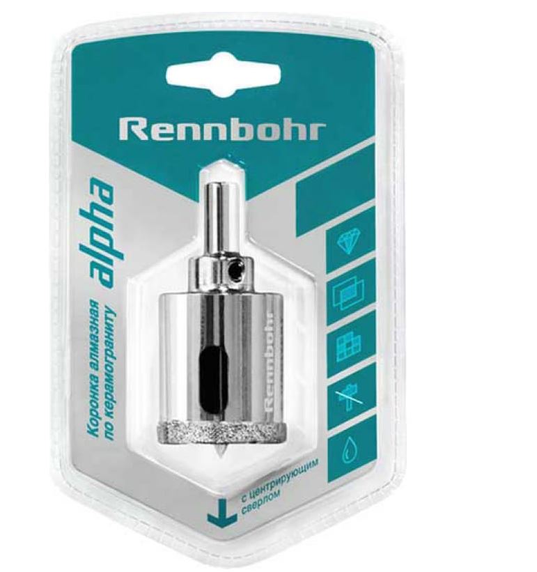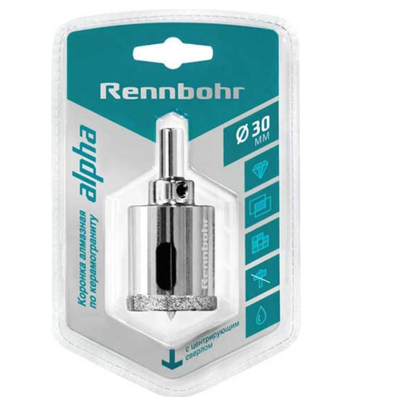 Коронка по керамике, керамограниту с центр.сверлом 30мм Rennbohr
