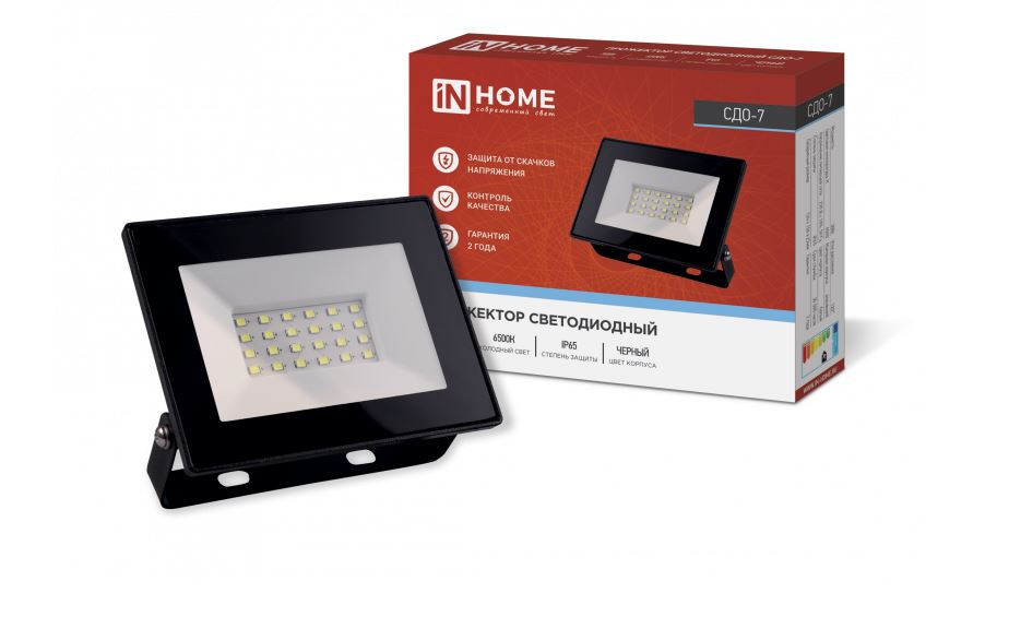 Прожектор светодиодный СДО-07 20W IP65 черный IN HOME