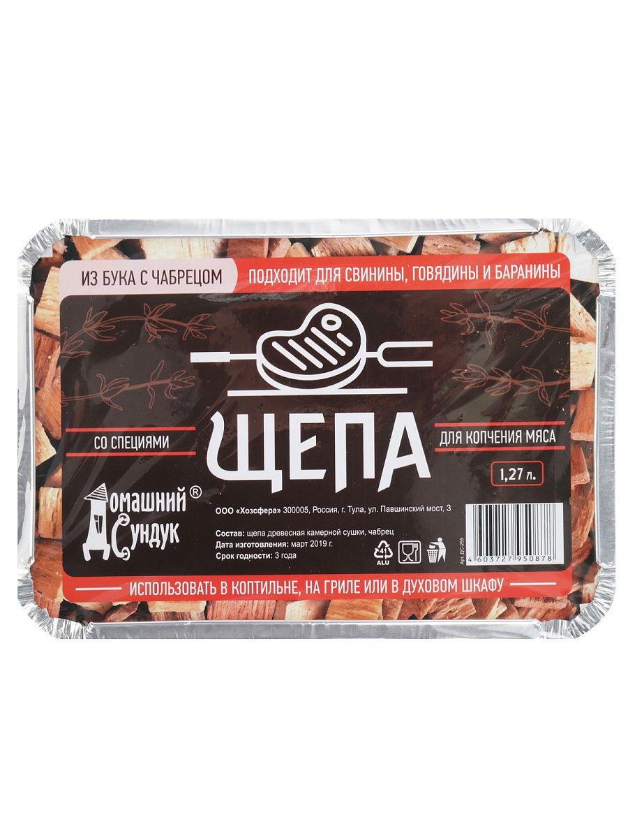 Щепа "Домашний Сундук" для копчения МЯСА с специями в лотке (бук с чабрецом) 1,27л