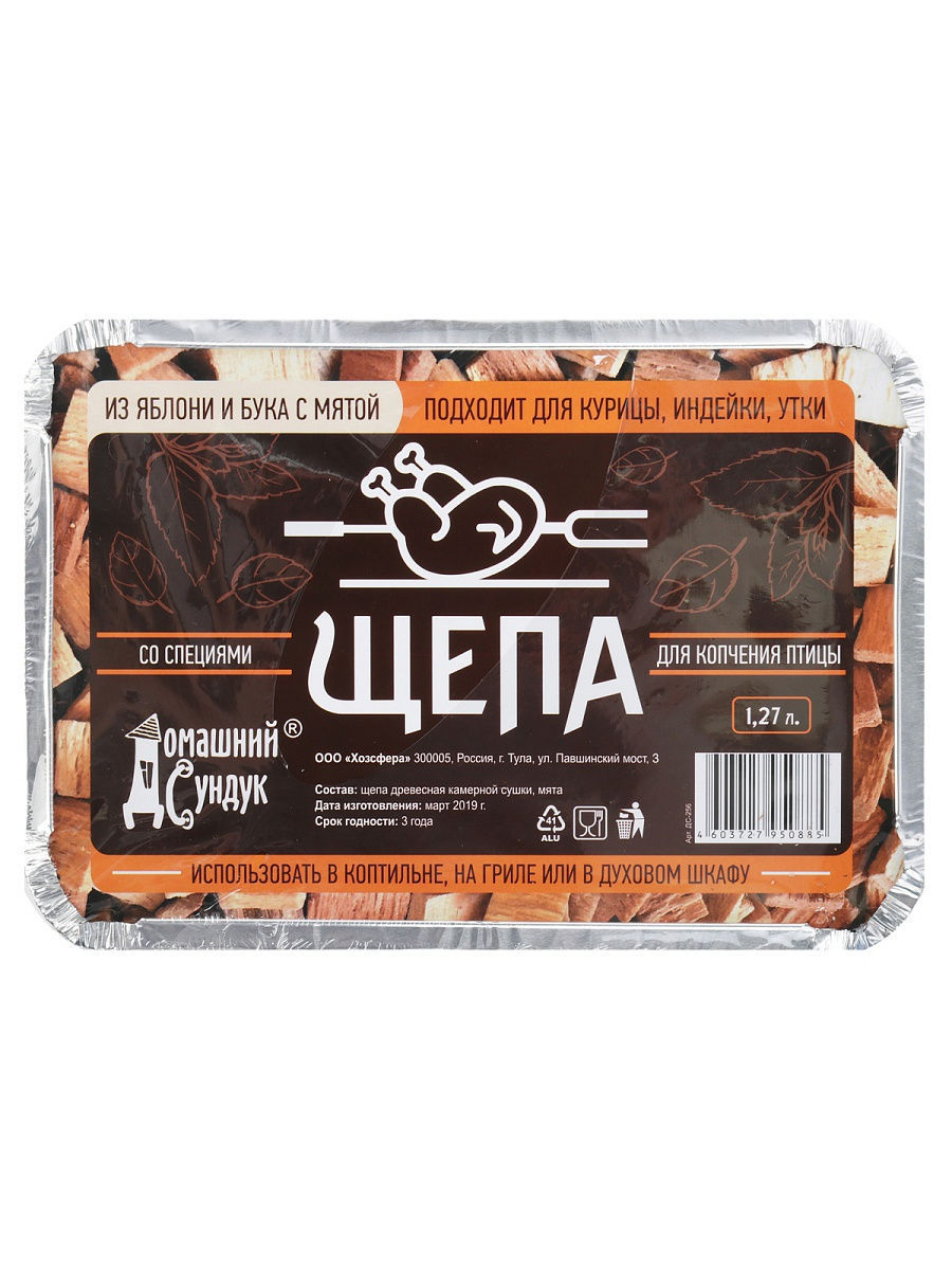 Щепа "Домашний Сундук" для копчения ПТИЦЫ с специями в лотке (яблоня и бук с мятой) 1,27л