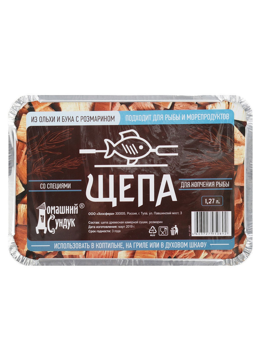 Щепа "Домашний Сундук" для копчения РЫБЫ с специями в лотке (ольха и бук с розмарином) 1,27л