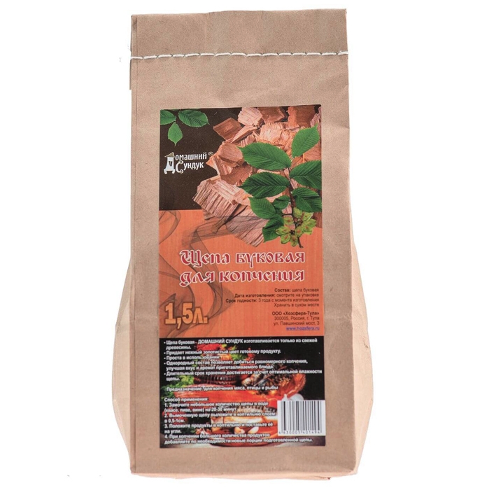 Щепа "Домашний Сундук" для копчения БУКОВАЯ, 1,5л