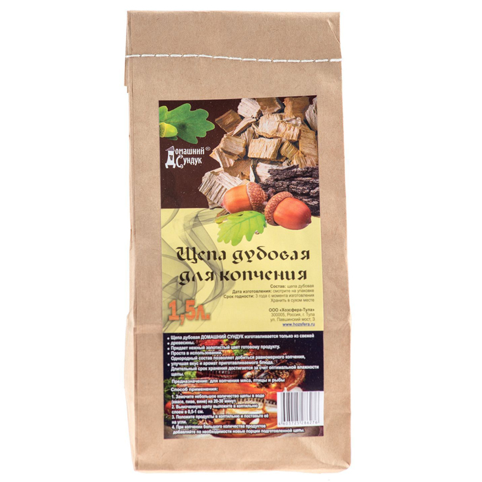 Щепа "Домашний Сундук" для копчения ДУБОВАЯ, 1,5л