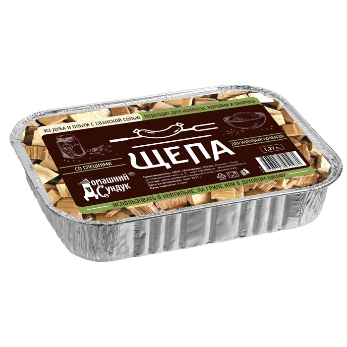 Щепа "Домашний Сундук" для копчения КОЛБАСОК со специями в лотке (дуб,ольха,сванская соль), 1,27л