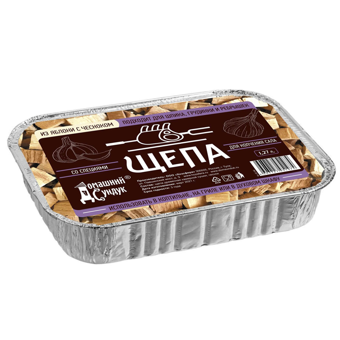 Щепа "Домашний Сундук" для копчения САЛА со специями в лотке (яблоня с чесноком), 1,27л