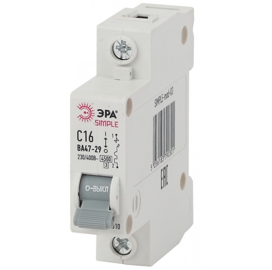 Автоматический выключатель 1P 16A (C) 4.5кА ВА 47-29, SIMPLE-mod-03 ЭРА