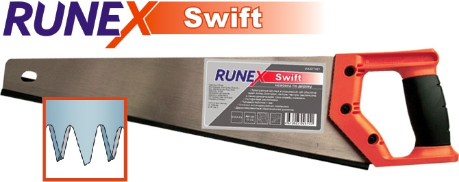 Ножовка по дереву Runex Swift 400мм 3гр заточка, 12з/д закал. быстрый распил 2-комп ручка (48 шт)