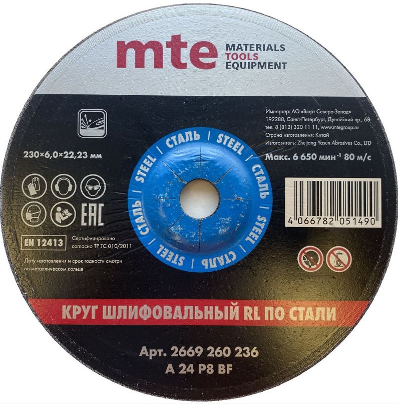 Диск зачистной по металлу 150*6*22 Кратон A30 TBF