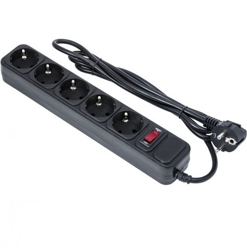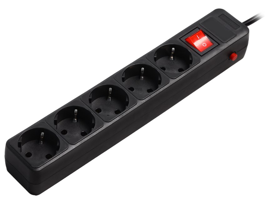 Сетевой фильтр 5гн, 3м, ПВС 3*0,75мм², с зазем., с выключ., черный Smartbuy