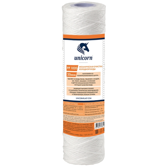 Картридж механической очистки из полипроп.шнура на хол.воду UNICORN PP 1020, 10", 20мкм