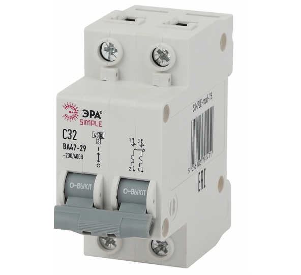 Автоматический выключатель 2P 32A (C) 4.5кА ВА 47-29, SIMPLE-mod-15 ЭРА